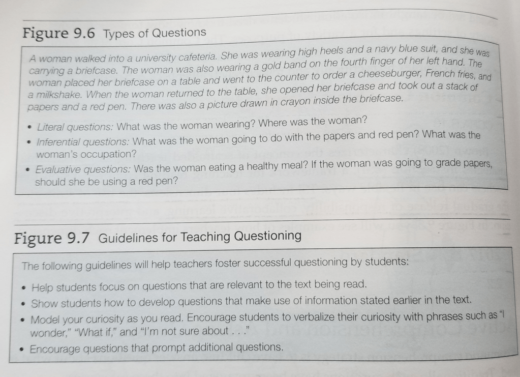 Active Comprehension and Asking Questions – a common comprehension strategy is to have children answer questions about what is read.